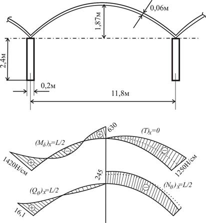 В частности, для оболочки с пролётом 11,8 м и радиусом срединной поверхности