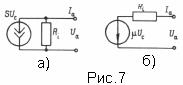 < 0 триод может быть представлен эквивалентной схемой с генератором тока (рис.7а) или генератором ЭДС (рис.7б).