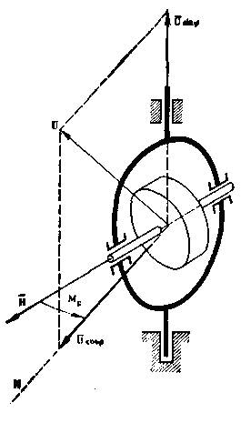 Предположим, что маховик раскручен и обладает кинетическим моментом Н, а вокруг оси внутреннего кольца карданова подвеса действует момент трения МTP, создаваемый ножевыми опорами.