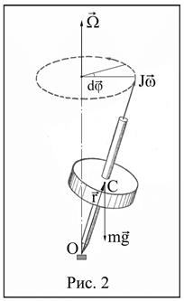 На гироскоп, изображенный на рис.2, действует момент силы тяжести