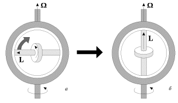 (вынужденный поворот), и кольцо с гироскопом будет поворачиваться в обойме до тех пор, пока направления L и