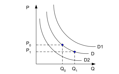 , и уменьшается, если кривая D смещается влево-вниз в положение