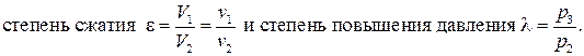 ) и выхлопа отработавших продуктов сгорания (процесс 4–1). В качестве конструктивных характеристик поршневого ДВС со смешанным подводом теплоты используются степень сжатия
