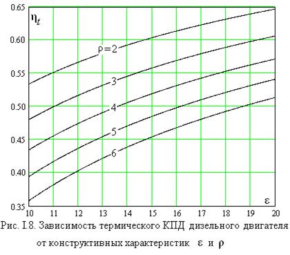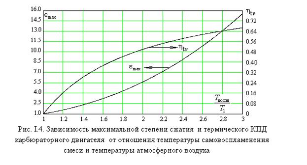 Основным недостатком карбюраторного двигателя является его относительно низкий КПД. Несмотря на то, что согласно графику на рис. I.4 термический КПД карбюраторного двигателя при степени сжатия