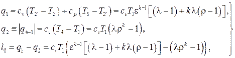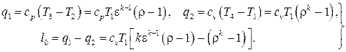 Удельные количества подведённой и отведённой в цикле теплоты будут определяться выражениями
