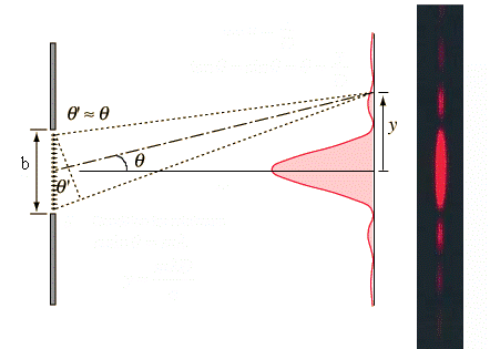 3.2.3. ДИФРАКЦИЯ НА ПРЯМОУГОЛЬНОЙ ЩЕЛИ.Пусть плоская волна падает на прямоугольную щель шириной b. По принципу Гюйгенса пучок параллельных лучей, проходя через щель, дифрагирует под всевозможными углами в пределах от 0 до π/2.