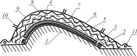 слой; 7 - цулага; 8 - дренажный слой; 9 - вакуумный мешок; 10 - клапан