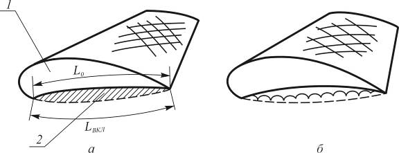 К оправке 1, определяющей форму изделия, в зоне вогнутого участка поверхности крепится вкладыш 2, превращающий наружный контур в выпуклый по всей оправке (рис.3.14). Вкладыш изготавливается таким образом, чтобы длина его наружного контура была равна длине контура вогнутого участка поверхности Lвкл = L0. После намотки технологический вкладыш удаляют и вогнутый участок изделия доформовывают.
