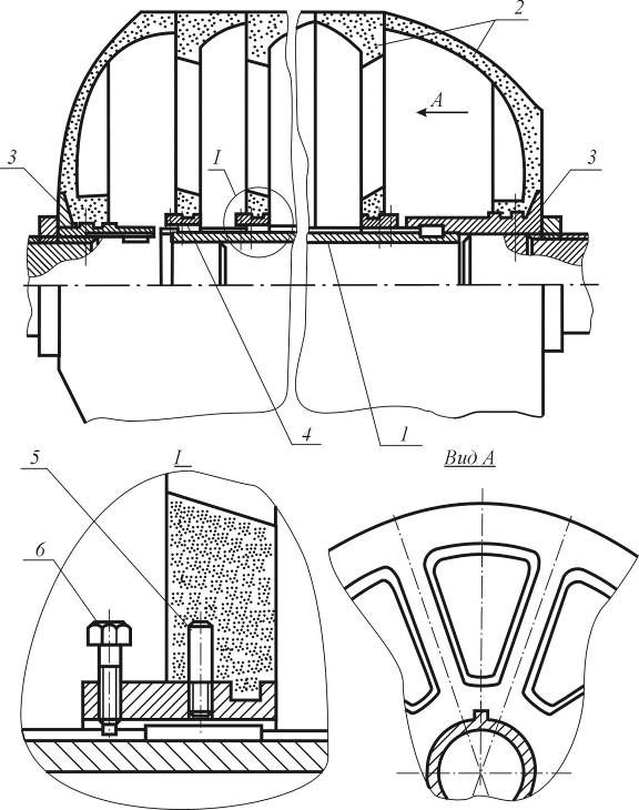 секции; 3 - горловины; 4 - основания секций (бандаж); 5 - штифт;