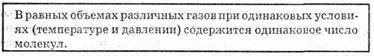 Закон Авогадро, молярный объем