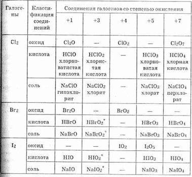 Таблица 17. Оксиды галогенов и соответствующие кислоты