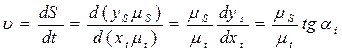 Масштаб скорости можно вывести из условия, что скорость исследуемой точки является производной перемещения S по времени:
