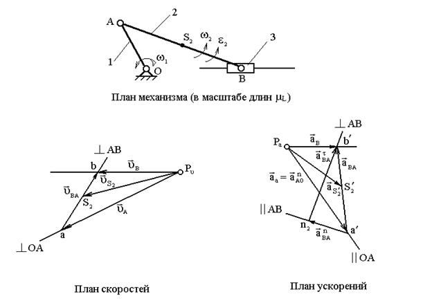 Планы скоростей и ускорений кривошипно-ползунного механизма