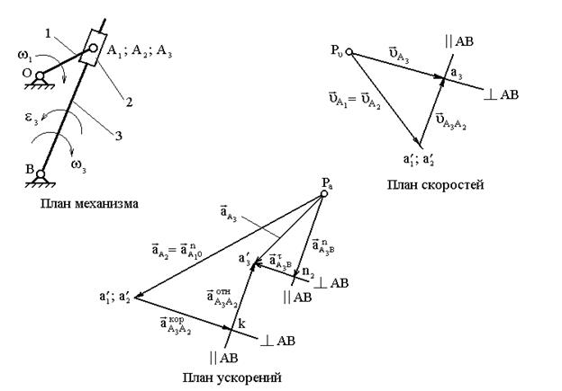 Планы скоростей и ускорений кулисного механизма