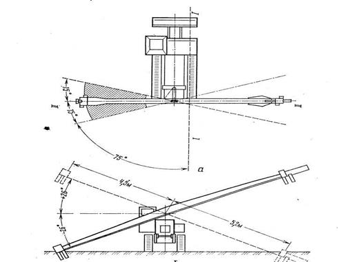 Рис. 2,2 Граничні кути повороту стріли в горизонтальній і вертикальній площині.