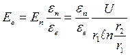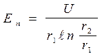 Здесь r1 и r2 - соответственно радиусы жилы и оболочки, U - напряжение на жиле.