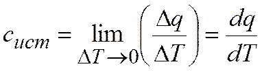 Истинная теплоемкость математически выражается как первая производная теплоты по температуре (при условии, что задан характер процесса).