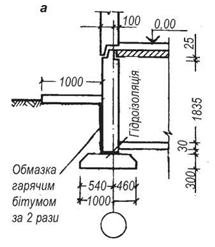 Стрічковий фундамент являє собою безперервну підземну стіну, яка передає навантаження від надземних стін або колон ґрунтові через розширену нижню частину (подушку) та піщану або щебеневу підсипку завтовшки 50-100 мм (рис. 4.5, а).