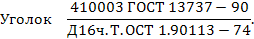 В конструкторской документации информация о профиле содержится в условном обозначении. Пример условного обозначения профиля «Равнополочный уголок» по ГОСТ 13737-90 размером 12х12х1 (шифр 410003) из сплава Д16ч, в заклепочном и естественно состаренном состоянии (Т), нормальной прочности: