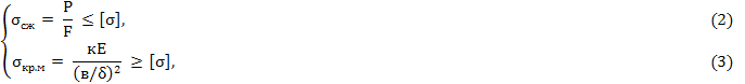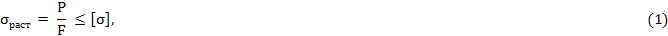 где Р, F, [σ] - соответственно действующая сила, площадь поперечного сечения профиля, допускаемое напряжение;