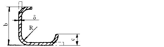 Конкретные размеры полок гнутого профиля назначаются конструктором после определения из (2) потребной ширины заготовки для выбранной толщины δ листа. Минимальное значение радиуса сгиба R определяется по [15], [16].