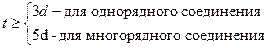 4. По условию (4) подбираются толщины соединяемых деталей.