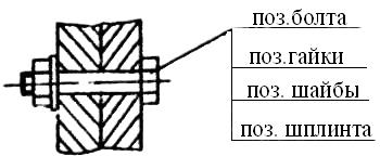 В чертежах болтовое соединение обозначается, как правило, группой позиций на одной выносной линии, расположенных в определенном порядке (рис. 3.2).