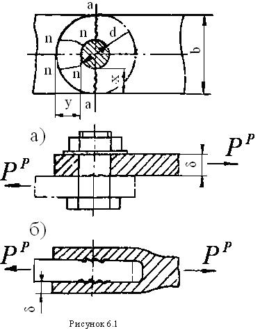 Из расчета проушины на срез по плоскостям n - n можно определить размер у (см. рис. 6.1). Условие прочности:
