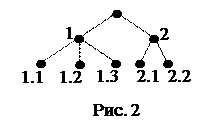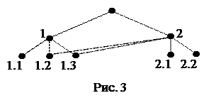 2. Структуры, в которых элемент (какие-либо элементы) нижележащего уровня может быть подчинен двуми более узлам (вершинам) вышележащего уровня, называют иерархическими структурами со “слабыми” связями (см. рис. 3).