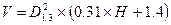 где D1.3 - диаметр растущего дерева на высоте груди, см.