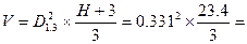 где D1.3 - диаметр растущего дерева на высоте груди, м;