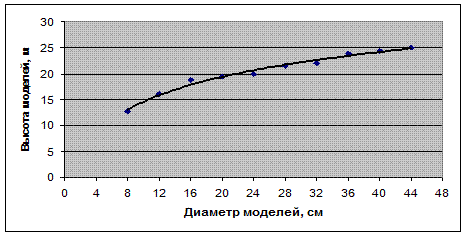 Для этого необходимо построить график зависимости между диаметрами и высотами модельных деревьев (рисунок 3).