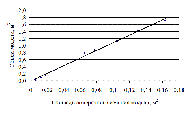 Прямая объемов строится по данным обмера модельных деревьев (таблица 18). В отличие от кривой объемов, на оси абсцисс откладываются не диаметры, а площади поперечных сечений модельных деревьев, а на оси ординат их объемы (рисунок 5). Для нахождения площади сечений по известным диаметрам модельных деревьев используется приложение А. Полученная система точек выравнивается прямой линией. Из точек площадей сечений, соответствующих диаметрам средины ступеней толщины (8, 12, 16 и т.д.), восстанавливаются перпендикуляры до пересечения с прямой объемов и по оси ординат снимаются усредненные объемы стволов для каждой ступени толщины, которые заносятся в таблицу 22. Дальнейший расчет запасов производится так же, как и по кривой объемов.