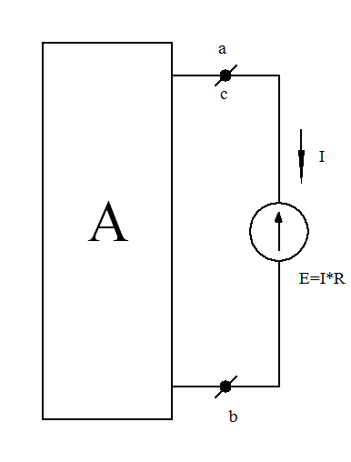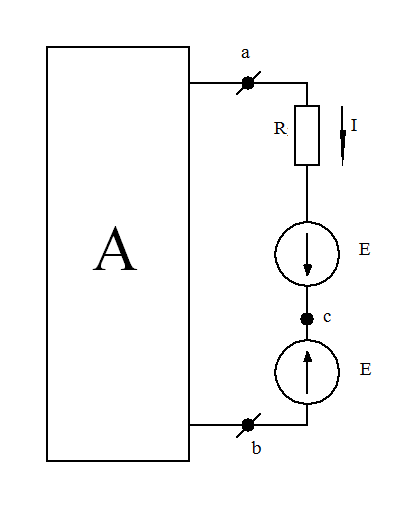 то ток I в цепи от этого не изменится. Убедимся в том, что разность потенциалов между точками «а» и «с» в схеме при этом будет равна нулю.
