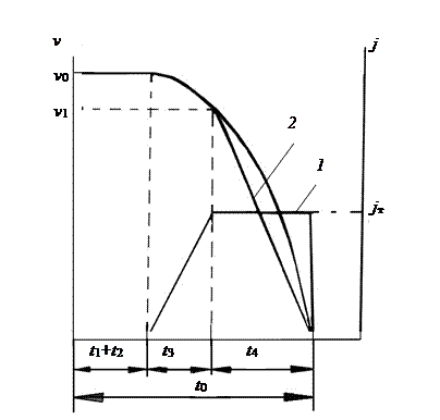 1 – j(t); 2 – v(t)