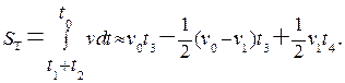 Тормозной путь Sт при полной блокировке колес определяется как площадь, ограниченная кривой 1 за время t3 + t4 (см. рис. 6.9), т. е.