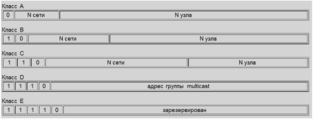 · Если адрес начинается с последовательности 11110, то это адрес класса Е, он зарезервирован для будущих применений.