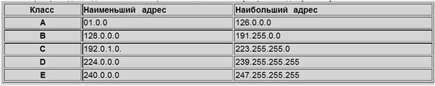 В таблице приведены диапазоны номеров сетей, соответствующих каждому классу сетей.