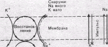 Возникновение серии импульсов в нервном или мышечном волокне сопровождается обогащением протоплазмы Na+ и потерей K+. Для гигантского аксона кальмара диаметром 0,5 мм подсчитано, что во время одиночного нервного импульса через каждый квадратный микрон мембраны в протоплазму поступает около 20 000 Na+ и столько же K+ покидает волокно. В итоге при каждом импульсе аксон теряет около одной миллионной общего содержания калия. Хотя эти потери очень незначительны, при ритмическом следовании импульсов, суммируясь, они должны были бы привести к более или менее заметным изменениям концентрационных градиентов.