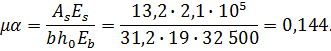 =1,4 – для гладкой проволочной арматуры; α=Es /Eb=2,1·105/(3,25·104)=6,46;