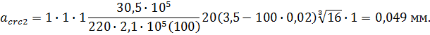 acrc= acrc1- acrc2+ acrc3=0,075-0,049+0,065=0,091≈0,1 мм < acrc1,max=0,4 мм.