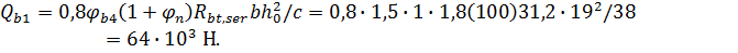 Qn=29 400 Н – поперечная сила от действия полной нормативной нагрузки при γf = 1,0; Qnld=19 400 Н – то же, от постоянной и длительной нагрузок.
