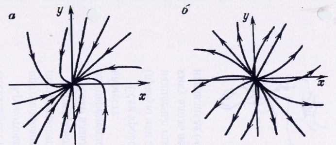 Рисунок 3. Типы состояния равновесия «устойчивый узел» (а) и «неустойчивый узел» (б)