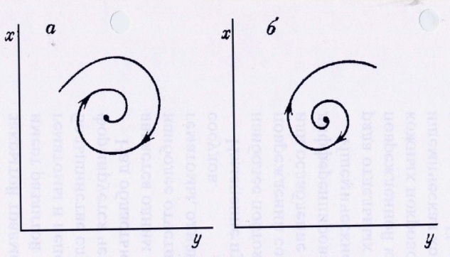 Рисунок 5. Типы состояния равновесия «устойчивый фокус «(а) и «неустойчивый фокус» (б)