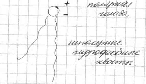 Длина хвоста 5-6 нм. Такие молекулы образуют в клетке бимолекулярные слои: гидрофобные части их повернуты дальше от водного окружения, т.е. друг к другу, и удерживаются вместе сильными гидрофобными взаимодействиями и слабыми силами Лондона-Ван-дер-Ваальса. Таким образом, мембраны на обеих наружных поверхностях гидрофильны, а внутри гидрофобны. Поскольку гидрофильные части молекул поглощают электроны, они видны в электронном микроскопе как два темных слоя. При физиологических температурах мембраны находятся в жидкокристаллическом состоянии: углеводородные остатки вращаются вдоль своей продольной оси и диффундируют в плоскости слоя, реже перескакивают из одного слоя в другой, не нарушая прочных гидрофобных связей. Чем большую долю составляют ненасыщенные жирные кислоты, тем ниже температура фазового перехода (точка плавления) и тем более жидкой бывает мембрана. Более высокое содержание стеролов с их жесткими гидрофобными молекулами, лежащими в гидрофобной толще мембраны, стабилизирует мембрану (главным образом у животных).