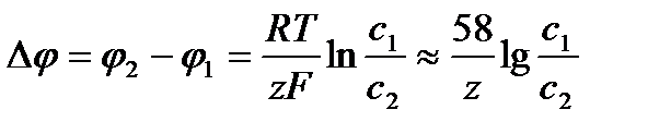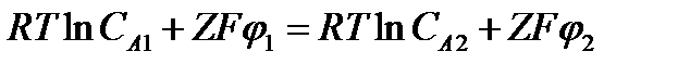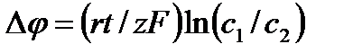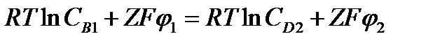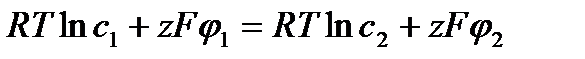 Из этих условий равновесия получаем уравнение для разности потенциалов