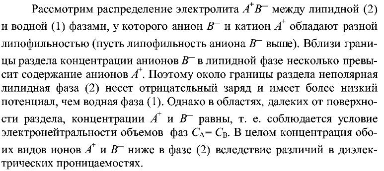 . Основной энергетический барьер, который стоит на пути проникновения ионов в липидную мембрану из водной фазы, возникает из-за того, что диэлектрическая постоянная липидов