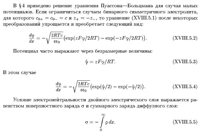 Решение уравнения (XVIII.4.5) имеет вид (приближение Дебая, или модель Гуи)