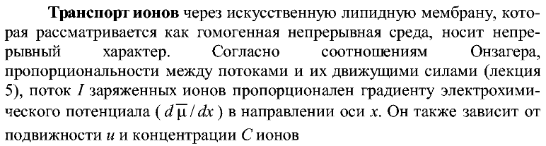 где Z - валентность иона, F - число Фарадея (96500 Кулон/моль). Непосредственно движущей силой переноса ионов является градиент электрохимического потенциала