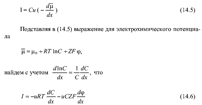 Если происходит перенос ионов, то их движение зависит не только от концентрации, но и от электрического потенциала